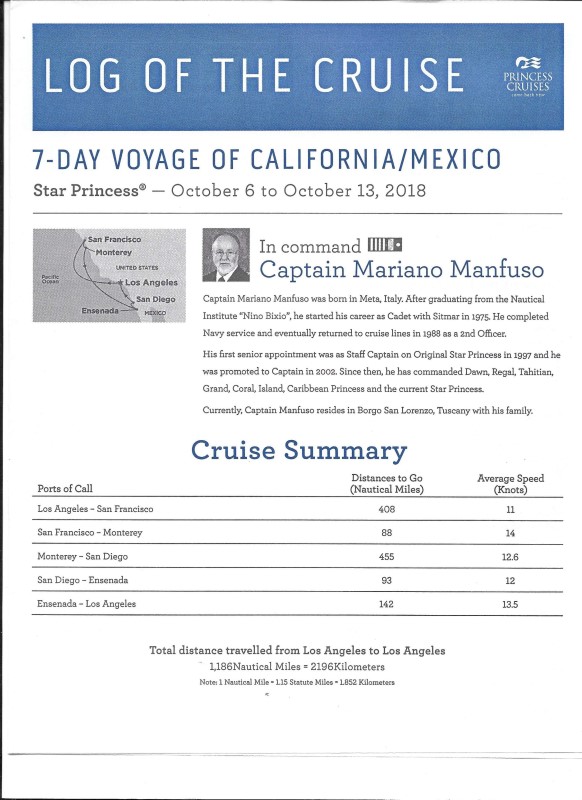 A great time on our annual cruise from Oct 6 thru the 13th, 2018. We visited San Francisco, Monterey, San Diego and Ensenada. Photos by Dave Johnston.