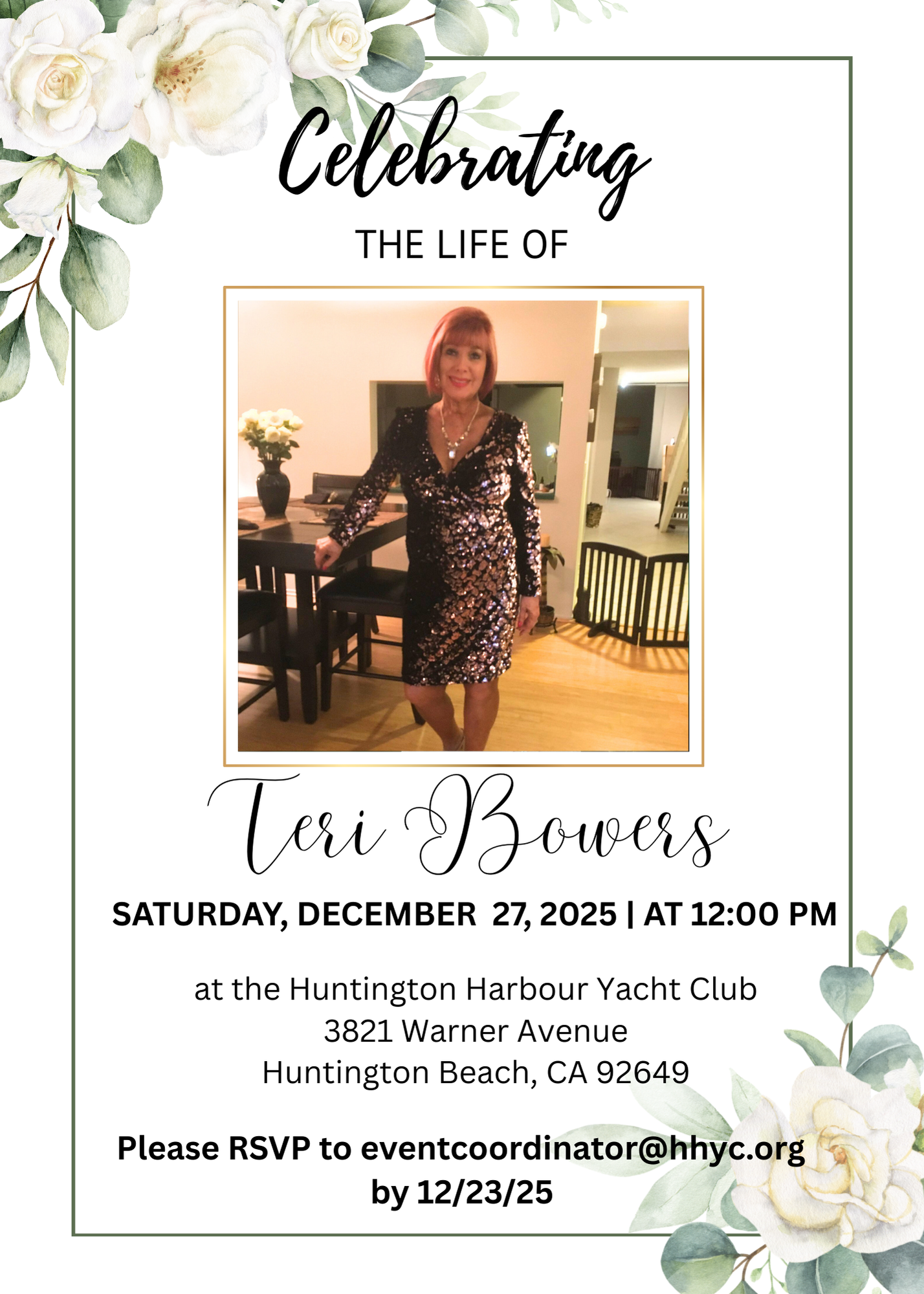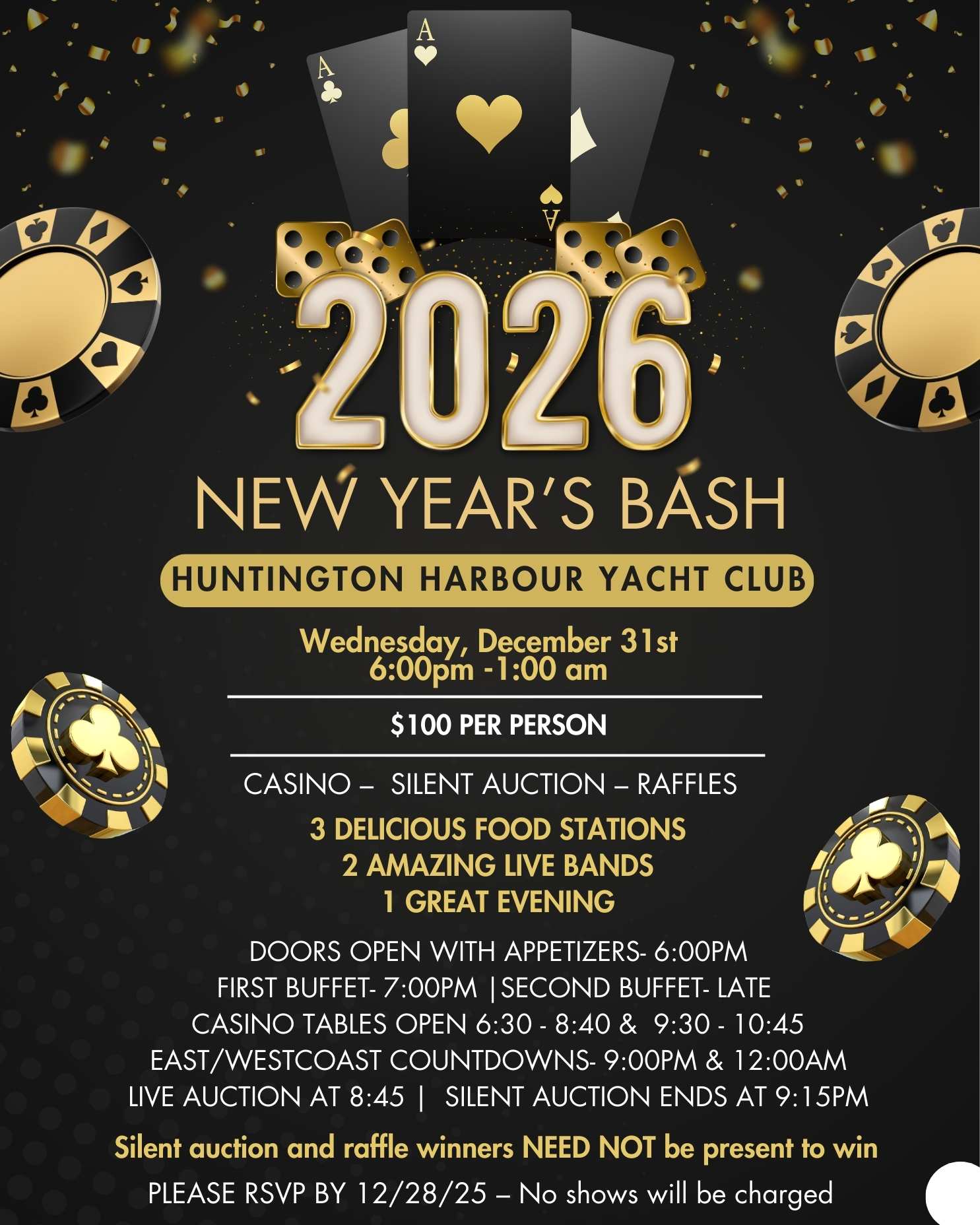 | ⚓︎ Week-at-a-Glance ⚓︎ December 16th-21st 2025 Ahoy, Please read all the way through this email to know what we have going on for this week at the Huntington Harbour Yacht Club. Cheers to a fun-filled week ahead! SAVE THE DATES: Last Day to Donate to the Employee Holiday Fund is Wednesday, December 17th! (cash or check only)Last Day to Donate to Orangewood Box in the Lobby is Thursday, December 18th!- Click Here to View the Donation ListTeri Bowers COL- Saturday, December 27th at 12pm (Email eventcoordinator@hhyc.org to RSVP)NYE Casino Night- Wednesday, December 31st |